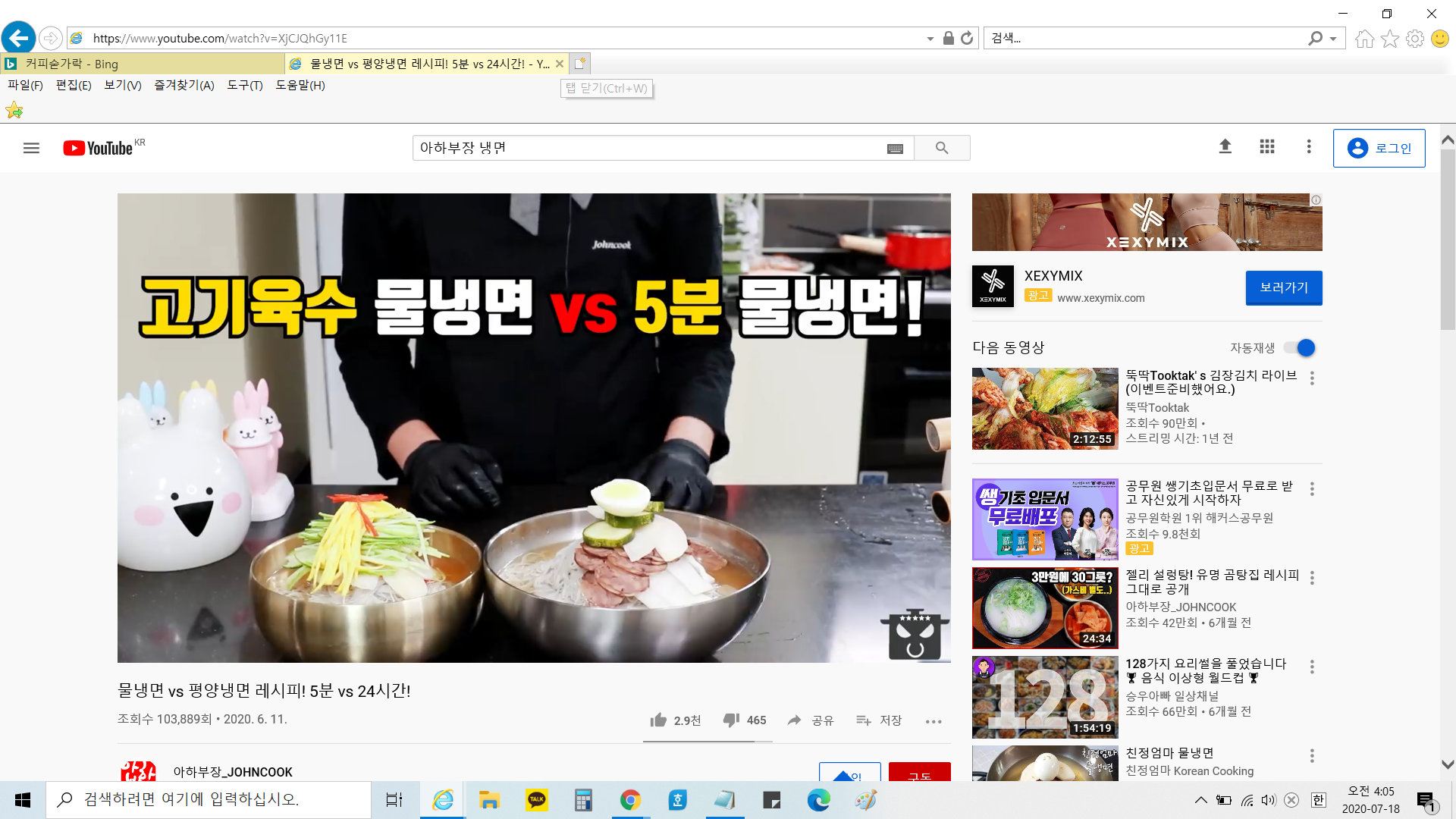 1. 2020년 6월 11일에 올리신 5분 냉면 레시피와 비슷해서 입니다.