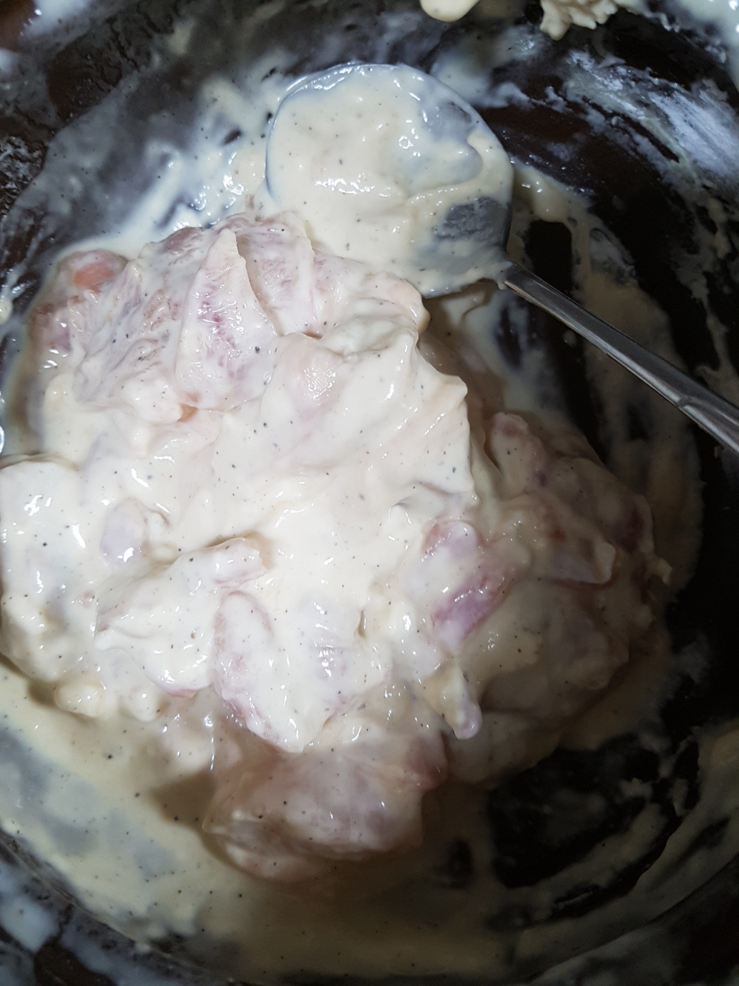 5. 아무튼 반죽과 닭 섞어줍니다.